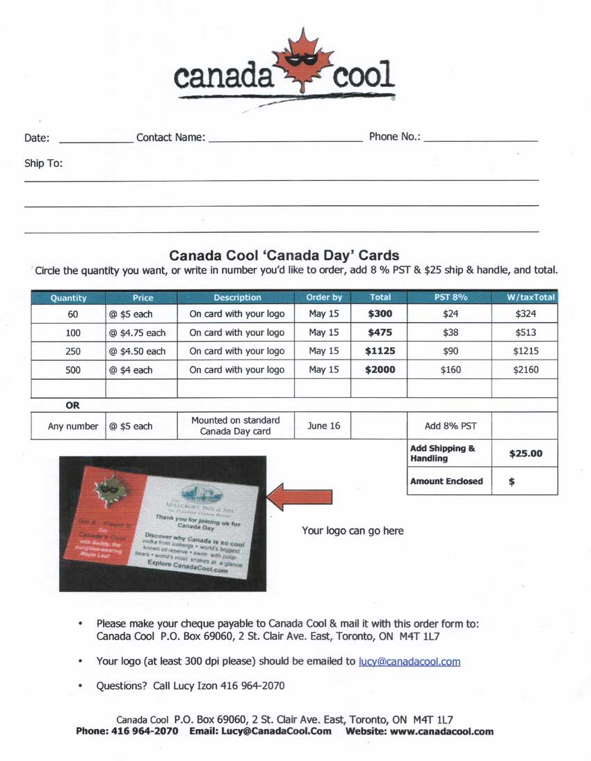 For orders outside Ontario email: